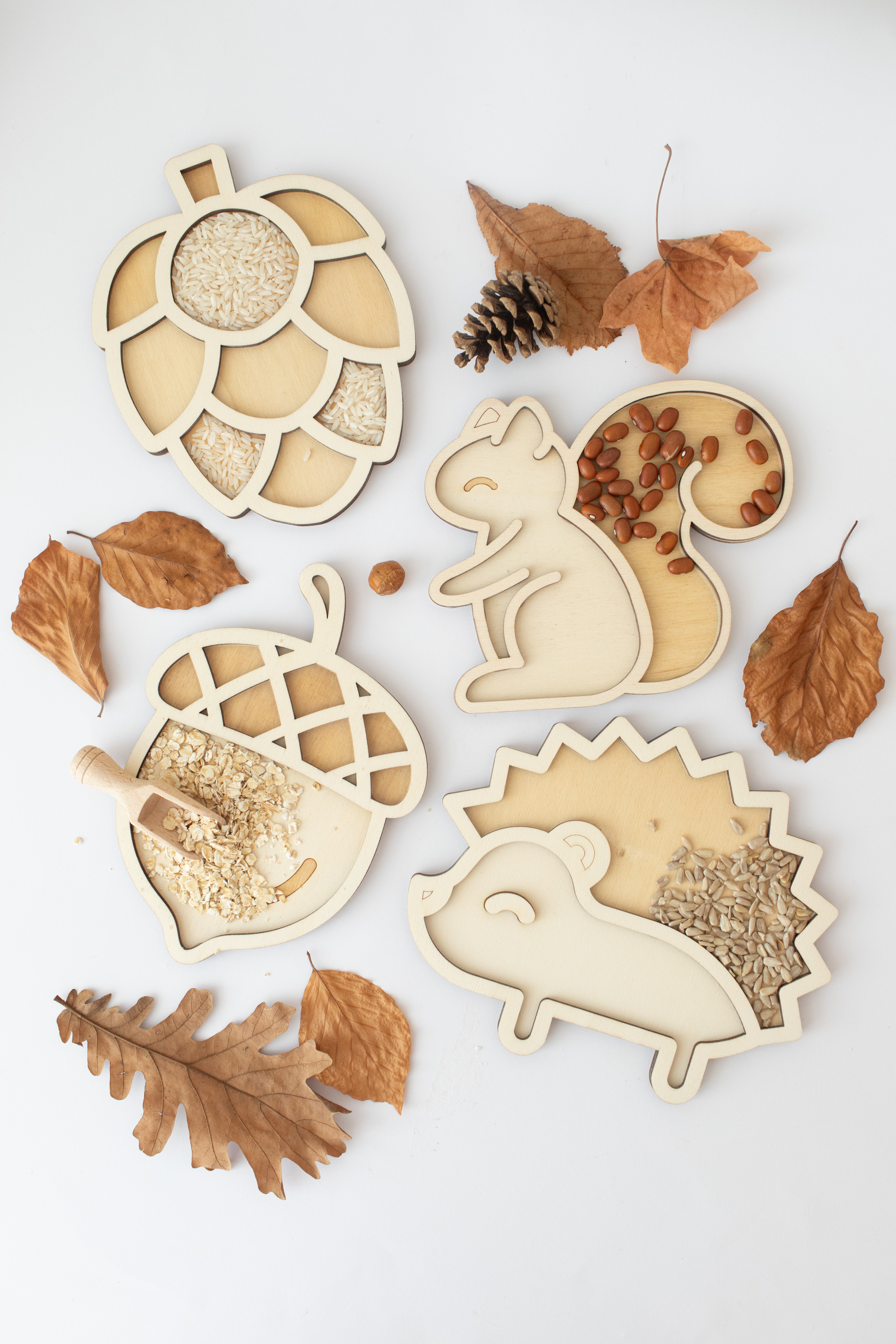 OverzichtDeze trays zijn veelzijdig en een leuke aanvulling aan bijvoorbeeld je houten speelbak. Een mooie aanvulling bij sensorisch speelgoed. Kinderen kunnen op kleur sorteren, ze vullen met rijst, mais, speelzand of andere verzamelde items, de mogelijkheden zijn eindeloos! . Er zijn diverse trays te vinden online passend bij verschillende thema's of seizoenen.